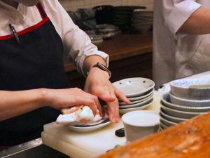 店内では、お客様に向けて、まずはおしぼりでおもてなし。